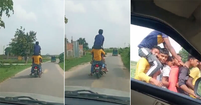 વાયરલ થઇ રહેલા આ વીડિયોમાં સૌથી આશ્ચર્યજનક વાત એ છે કે છઠ્ઠા વ્યક્તિના ખભા પર સાતમો વ્યક્તિ બેઠો છે. આ યુવાનોના પરાક્રમને જોઈને મોટાભાગના લોકો ચિંતિત છે, ત્યારે આ ખતરનાક સ્ટંટ કરવાનું ગૌરવ આ છોકરાઓના ચહેરા પર સ્પષ્ટ જોઈ શકાય છે. આ ક્લિપ 22 સેકન્ડની છે. આમાં આપણે જોઈ શકીએ છીએ કે છોકરાઓનું એક જૂથ મોટરસાઈકલ પર જઈ રહ્યું હતું, જેનો વીડિયો તેમની પાછળ આવેલા કાર ચાલકે બનાવ્યો હતો.
