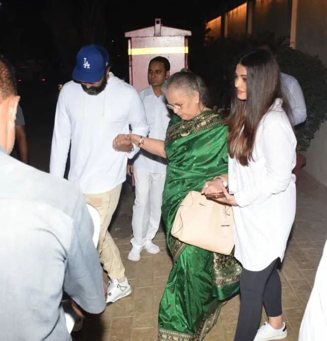 એશ્વર્યા રાયની માતા વૃંદા રાય પણ નાતિનની બર્થ ડે પાર્ટીમાં પહોંચ્યા હતા. એક તસવીરમાં એશ અને અભિષેક વૃંદા રાયને ચાલવામાં મદદ કરતા જોવા મળી રહ્યા છે. એશ્વર્યાની લાડલીની બર્થ ડે પાર્ટીમાં સોનાલી બેન્દ્રે પણ પહોંચી હતી. આ દરમિયાન સોનાલીએ વ્હાઇટ ટી શર્ટ અને પિંક પેન્ટ પહેર્યુ હતુ. ભત્રીજી આરાધ્યાની બર્થ ડે પાર્ટીમાં તેની ફોઇ શ્વેતા પણ પહોંચી હતી.