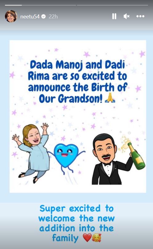 ત્યારે હવે બંને માતા-પિતા બની ગયા છે. તેમના ઘરે પુત્રનો જન્મ થયો છે. નીતુ કપૂરે સોશિયલ મીડિયા પર શેર કરેલી પોસ્ટમાં લખવામાં આવ્યુ છે કે, ‘દાદા મનોજ જૈન અને દાદી રીમા જૈન તેમના પૌત્રને આવકારવા માટે ખૂબ જ ઉત્સાહિત છે. અમે પરિવારમાં નવા સભ્યનું સ્વાગત કરીએ છીએ. નીતુ કપૂરની પુત્રી અને રણબીર કપૂરની બહેન રિદ્ધિમા કપૂરે અરમાન અને અનીસાને માતા-પિતા બનવા બદલ અભિનંદન પાઠવ્યા હતા.