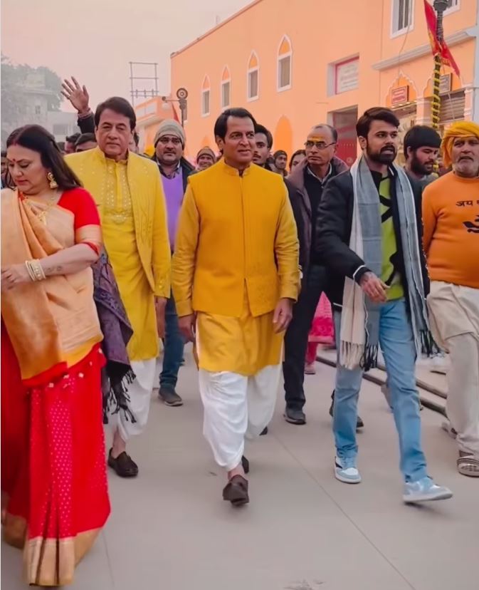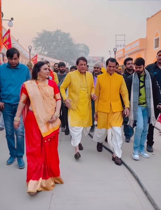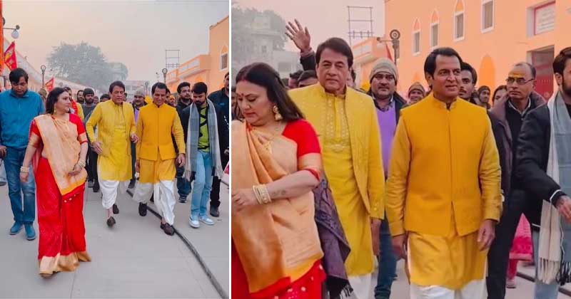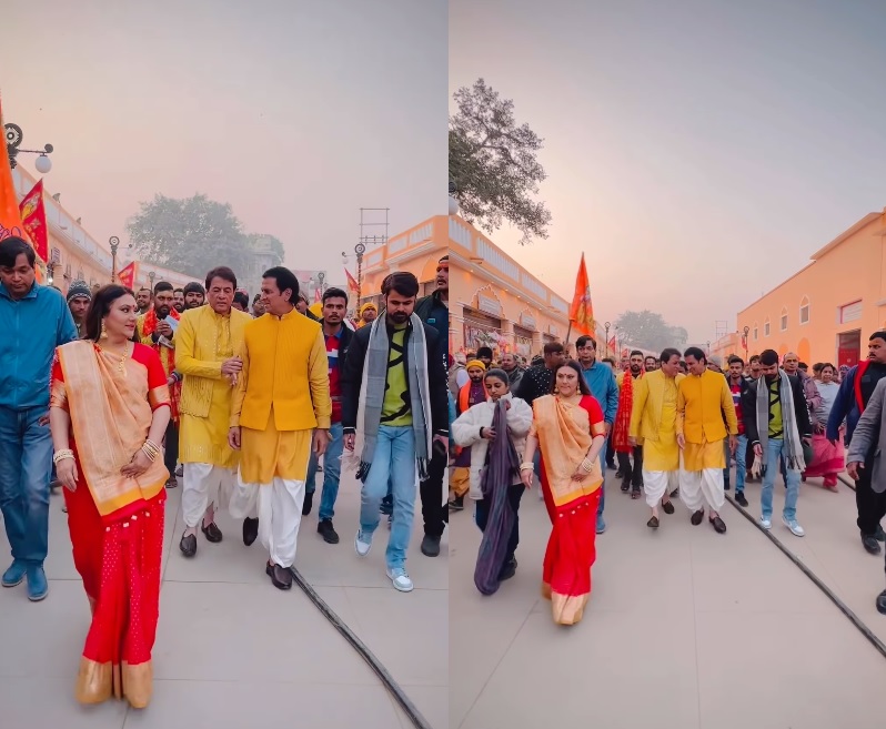 અરુણ ગોવિલ, દીપિકા ચિખલિયા અને સુનીલ લહેરીનો વીડિયો સોશિયલ મીડિયા પર વાયરલ થઇ રહ્યો છે, જેમાં તેઓ અયોધ્યામાં જોવા મળી રહ્યા છે. વીડિયોમાં સીતા મા એટલે કે દીપિકા ચિખલિયા લાલ સાડીમાં તો રામ-લક્ષ્મણ એટલે કે અરુણ ગોવિલ અને સુનીલ લહેરી કુર્તા-પાયજામામાં જોવા મળી રહ્યા છે. વીડિયોમાં તેમની આસપાસ મોટી ભીડ પણ જોવા મળી રહી છે. સોશિયલ મીડિયા પર વાયરલ થઈ રહેલા વીડિયો પર યૂઝર્સ ભક્તિમય કોમેન્ટ્સ કરી રહ્યા છે.