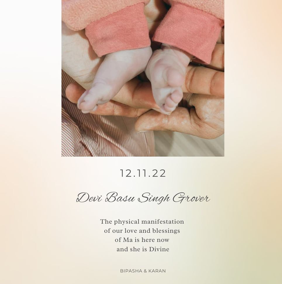 દીકરીની એક ઝલક બતાવવા ઉપરાંત બિપાશાએ ખુબ જ સરસ કેપશન પણ લખ્યું છે, તેને લખ્યું છે કે, “સ્વીટ બેબી એન્જલ બનાવવા માટેની અમારી રેસીપી… અડધો કપ તું અને અડધો કપ હું… અડધો કપ માતાના અઢળક પ્રેમ અને આશીર્વાદ… રેઈન્બોના 3 ટીપાં અને પછી ક્યૂટનેસ અને યમ્મીનેસ ટેસ્ટ પ્રમાણે.”