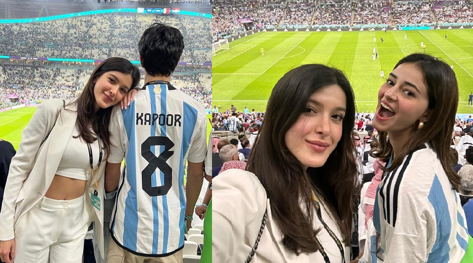 આ સિવાય બોલિવૂડ એક્ટર સંજય કપૂર પણ પોતાના પરિવાર સાથે ફિફા વર્લ્ડ કપની સેમીફાઈનલમાં પહોંચ્યો હતો, જેની તસવીરો તેણે ઈન્સ્ટાગ્રામ પર પોસ્ટ કરી હતી. અનન્યા પાંડે, કરિશ્મા કપૂર, મૌની રોય અને સંજય કપૂર સિવાય શનાયા કપૂર, ચંકી પાંડે પણ પહોંચ્યા હતા, સોશિયલ મીડિયા પર વાયરલ થયેલી પોસ્ટમાં અનન્યા આર્જેન્ટિનાની જર્સી પહેરેલી જોવા મળી હતી.
