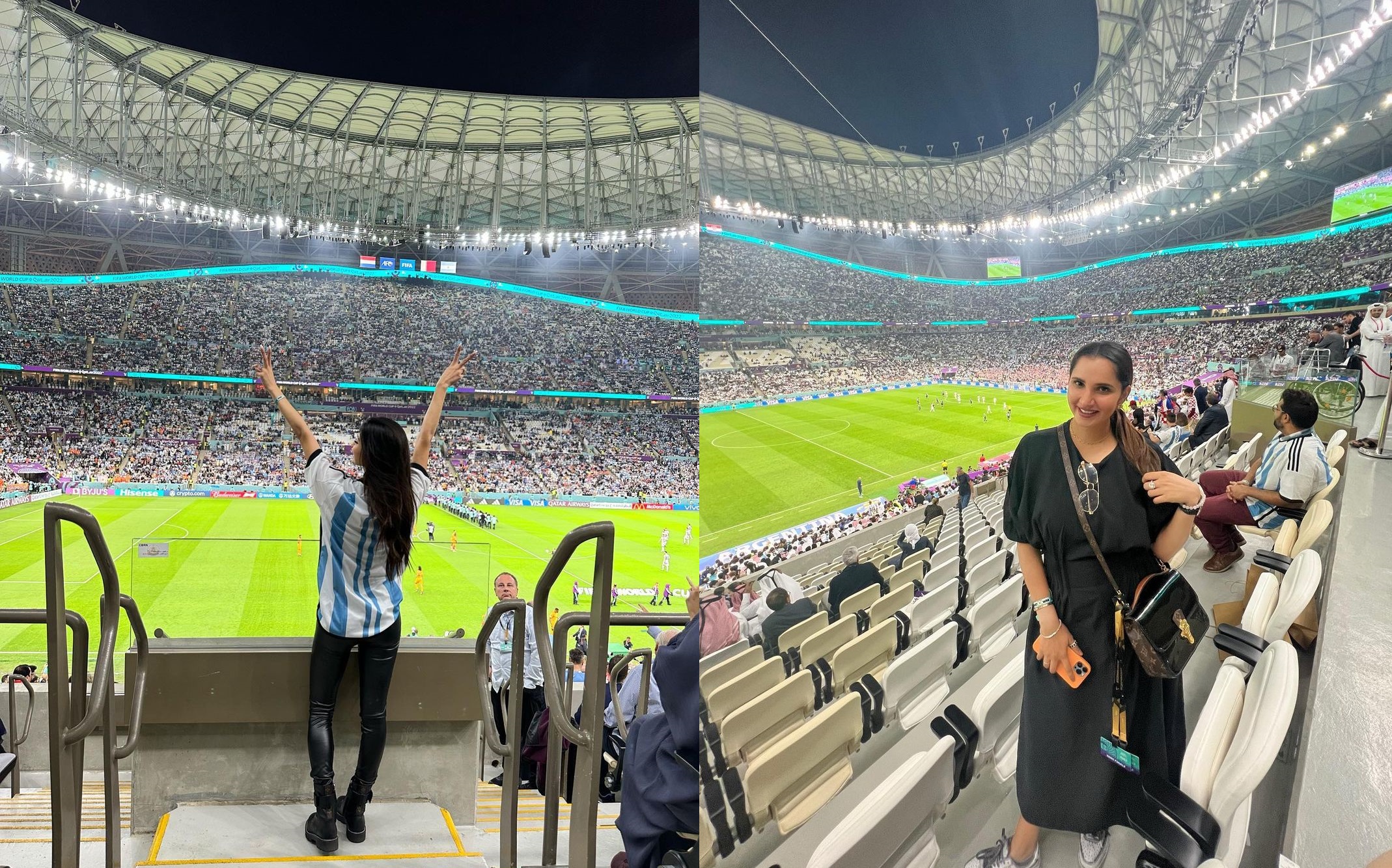 અભિનેત્રીએ તેના ઇન્સ્ટાગ્રામ પર ઘણા ફોટા અને વીડિયો પોસ્ટ કર્યા છે, જેમાં અભિનેત્રીએ કેપ્શનમાં લખ્યું છે કે, કેવો અનુભવ છે. અભિનેત્રીના આ ફોટા પર કોમેન્ટ કરતાં સોહા અલી ખાને લખ્યું- અમેઝિંગ. છૂટાછેડાના સમાચારને કારણે આ દિવસોમાં હેડલાઇન્સમાં રહેલી ભારતીય ટેનિસ ખેલાડી સાનિયા મિર્ઝા પણ ફિફા વર્લ્ડ કપ 2022ની મજા માણવા પહોંચી હતી. સાનિયાએ તસવીરો અને વીડિયો પોસ્ટ કરી કેપ્શનમાં લખ્યું,
