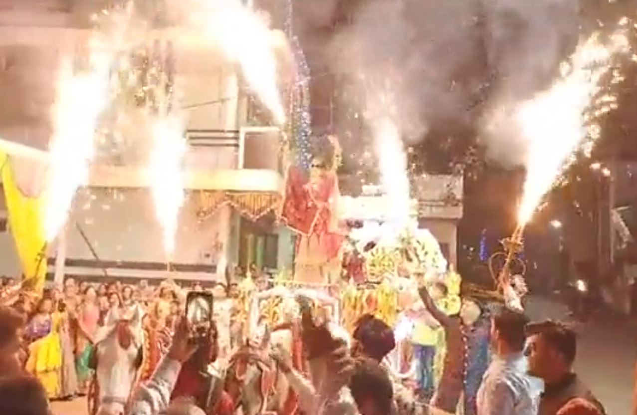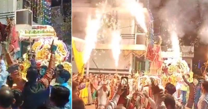 Bride Reached For Wearing With Fireworks : હાલ દેશભરમાં લગ્નનો માહોલ ચાલી રહ્યો છે અને ઠેર ઠેર હવે લગ્ન પ્રસંગો પણ યોજાઈ રહ્યા છે. ત્યારે આ દરમિયાન સોશિયલ મીડિયામાં પણ લગ્નને લઈને ઘણા બધા વીડિયો પણ વાયરલ થતા હોય છે. જેમાં વરરાજ કે કન્યાની ધમાકેદાર એન્ટ્રી જોવાનું લોકો ખાસ પંસદ પણ કરતા હોય છે. હાલ એવી જ એક કન્યાના વરઘોડાનો વીડિયો સોશિયલ મીડિયામાં ધૂમ મચાવી રહ્યો છે, જેમાં કાળા ચશ્મા પહેરીને નાચતી દુલ્હન લોકોના આકર્ષણનું કેન્દ્ર બની છે.
