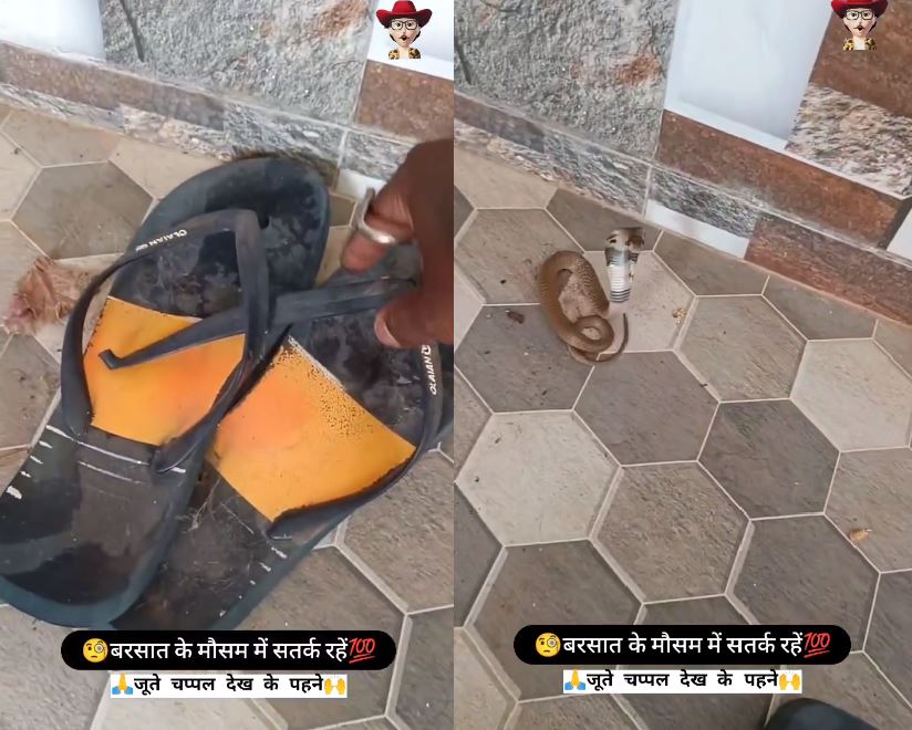 જો તમે પણ ચોમાસામાં તમારા બુટ ચપ્પલ જોયા વિના પહેરો છો તો થઇ જજો સાવધાન ! ચપ્પલની નીચેથી જ સુસવાટા મારતો નીકળ્યો કિંગ કોબ્રા… વીડિયો વાયરલ