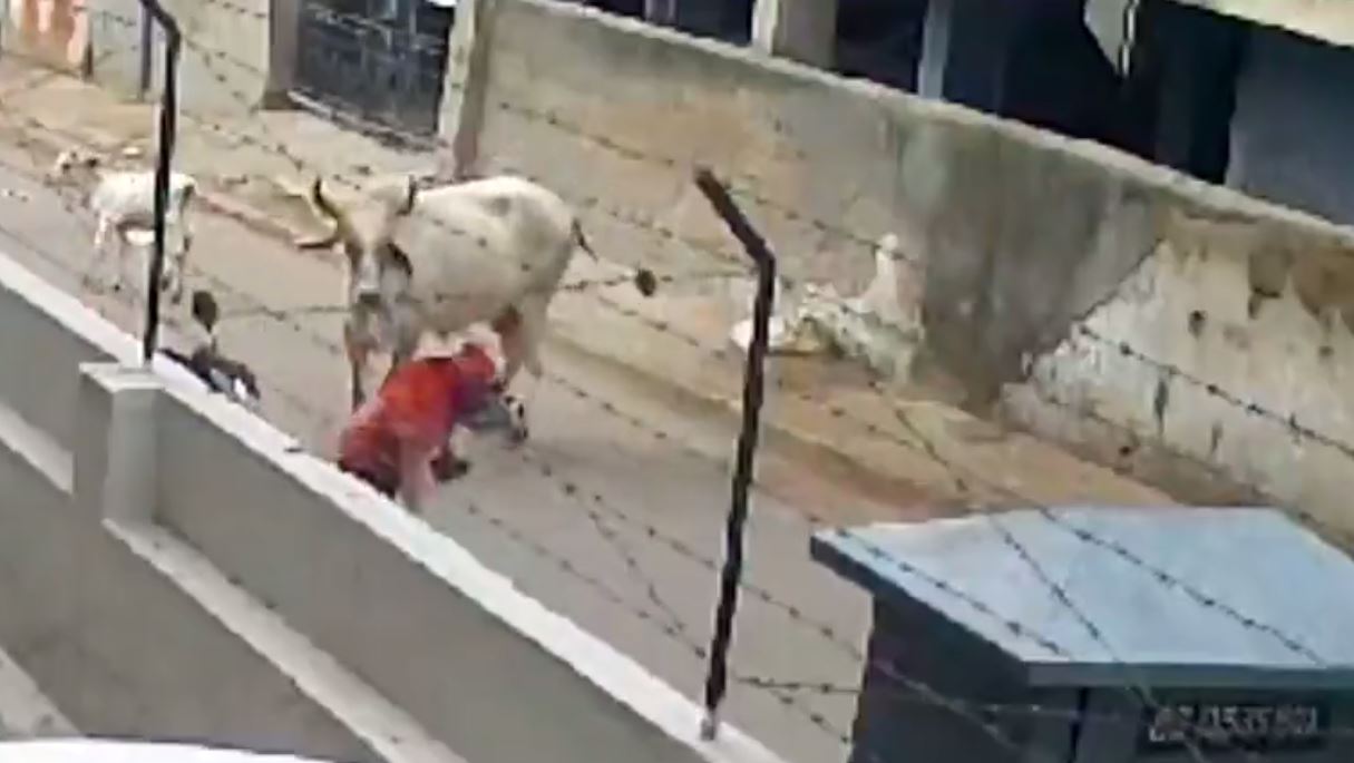 જેમાં લાલ દુપટ્ટો પહેરી જઇ રહેલી મહિલા પર ગાયે હુમલો કર્યો અને લોકો મહિલાને બચાવવા દોડ્યા ત્યાં સુધીમાં તો ગાય તેને ગંભીર રીતે ઘાયલ કરી ચૂકી હતી. જે પછી મહિલાને આઈસીયુમાં દાખલ કરવામાં આવી. આ વીડિયો અમદાવાદના નરોડા વિસ્તારનો જણાવવામાં આવી રહ્યો છે. મહિલાની હાલત ગંભીર છે.