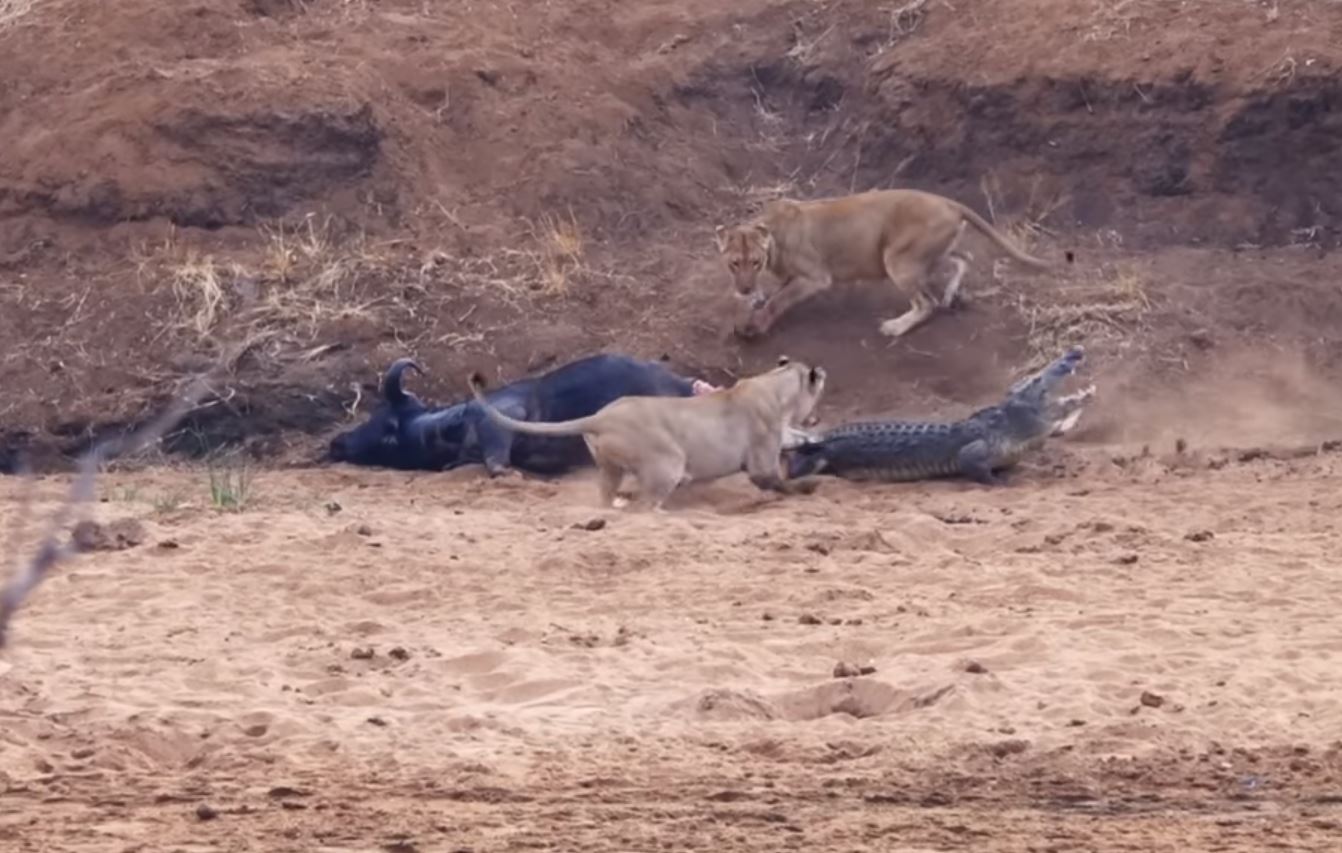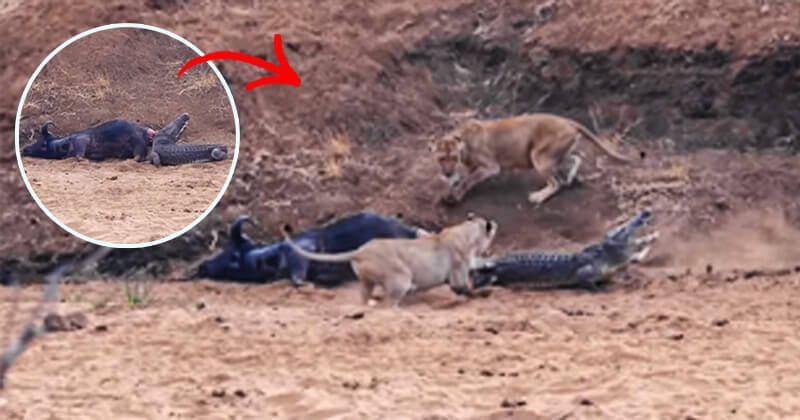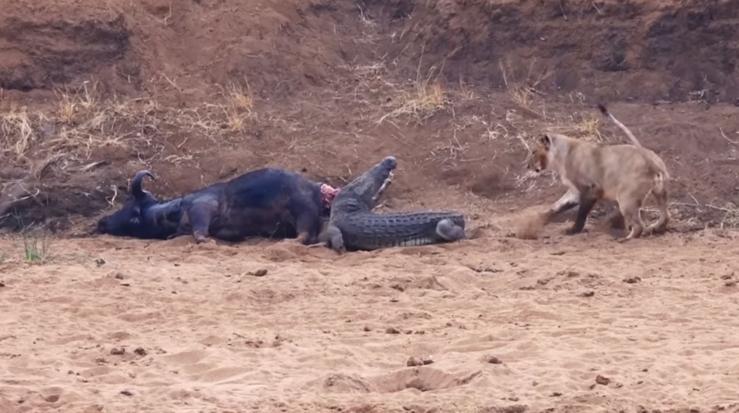 સિંહના શિકાર પર મગરે જમાવ્યો કબ્જો :