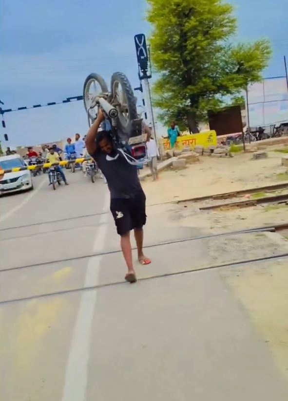 ફાટક હતો બંધ…બાહુબલીની જેમ વ્યક્તિએ ખભા પર ઉઠાવી 100 કિલોની બાઇક અને આરામથી પાર કરવા લાગ્યો રેલવે ટ્રેક- વીડિયો જોઇ ચોંક્યા લોકો