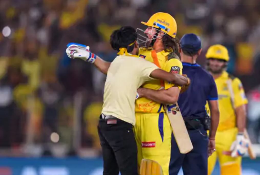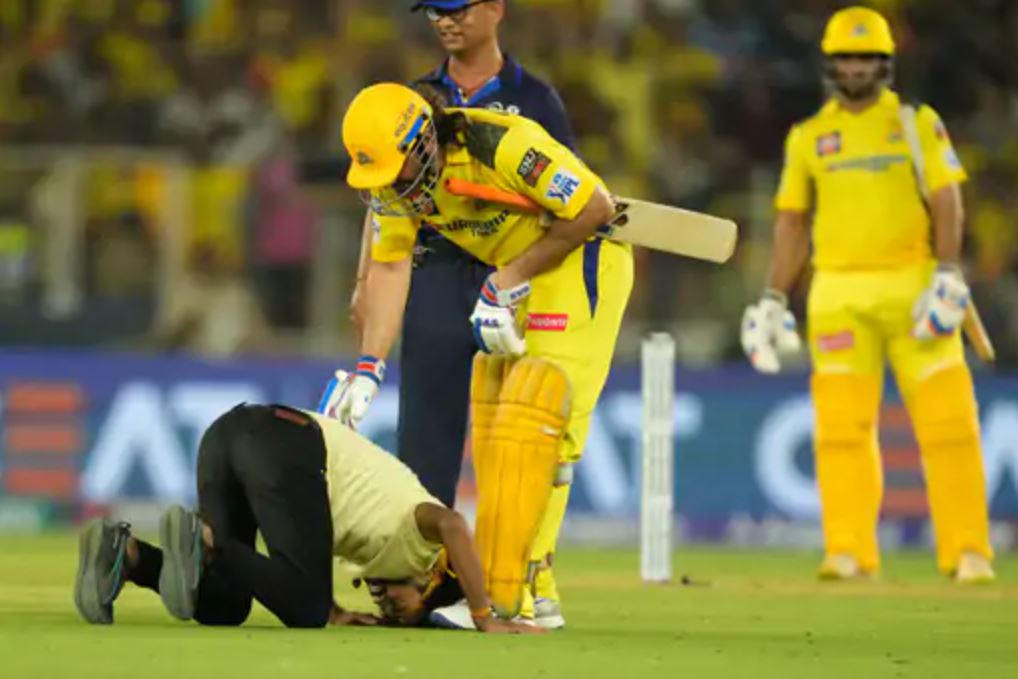 અમદાવાદના નરેન્દ્ર મોદી સ્ટેડિયમમાં આ ઘટના મેચની છેલ્લી ઓવર દરમિયાન બની હતી, જેમાં લક્ષ્યનો પીછો કરવા ઉતરેલી ચેન્નાઇની ટીમના પૂર્વ કપ્તાન અને વિકેટકીપર મહેન્દ્ર સિંહ ધોની બેટિંગ કરવા આવ્યો અને થોડા બોલ રમ્યા બાદ ચાલુ મેચમાં એક દર્શક સિક્યુરિટીને ચકમો આપીને સીધો જ મેદાનની અંદર ઘુસી ગયો હતો.