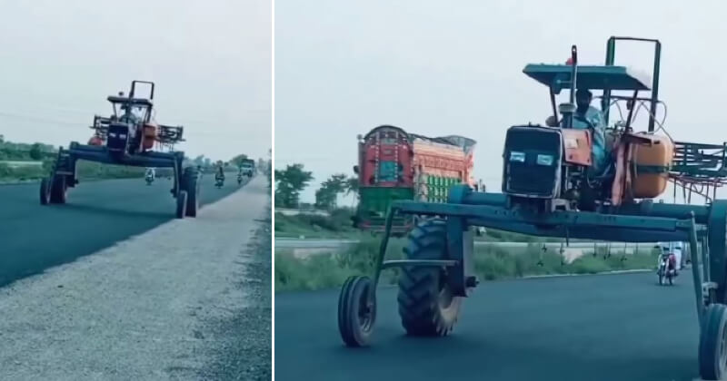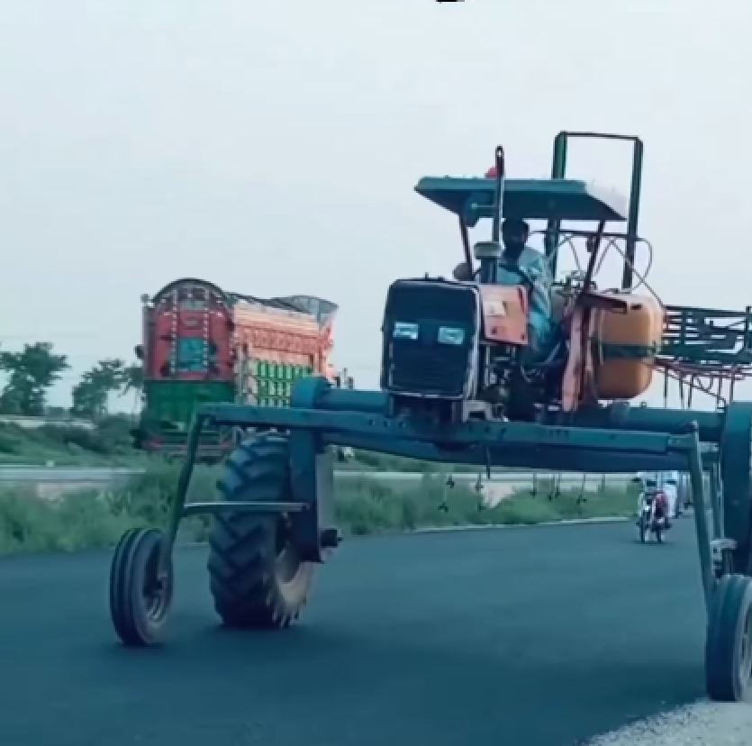 ખેડૂતનો આ વિચાર એટલો સારો છે કે તેના વખાણ કરીએ તેટલા ઓછા છે. ખૂબ જ સરળ રીતે ખેડૂતે ટ્રેક્ટરનો આખો લુક બદલી નાખ્યો છે. ચોક્કસ તમે આજ સુધી આવું ટ્રેક્ટર નહીં જોયું હોય. વીડિયોમાં જોઈ શકાય છે કે દેશી જુગાડથી બનેલા ટ્રેક્ટરની બોડી સાવ અલગ છે. આગળના બે પૈડા એકદમ નાના છે. જ્યારે, પાછળના વ્હીલ્સ મોટા છે. આ સિવાય વ્હીલ્સ વચ્ચે ઘણો ગેપ છે. ખાસ વાત એ છે કે ટ્રેક્ટરની ઊંચાઈ 8-9 ફૂટ છે.