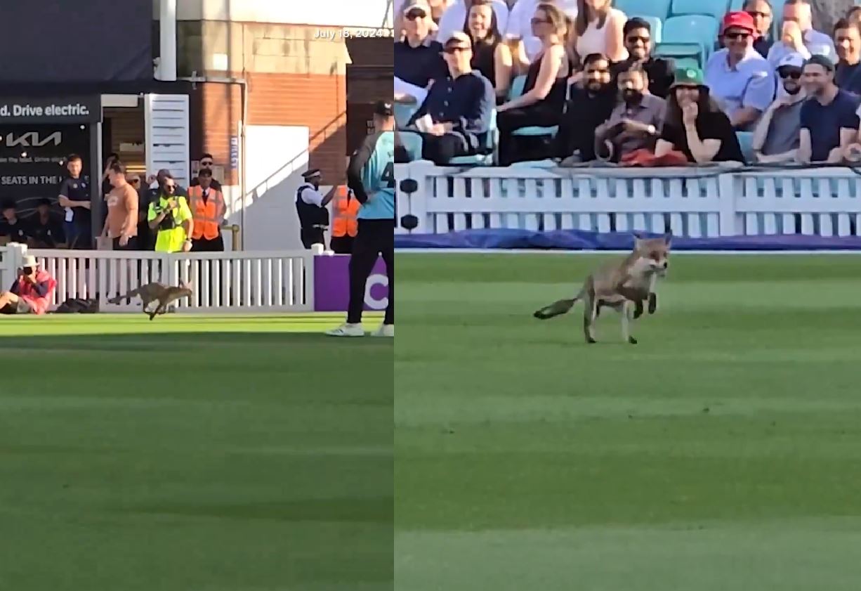 Fox entered the live match : આ દિવસોમાં બ્રિટનમાં Vitality T20 બ્લાસ્ટ ટૂર્નામેન્ટ રમાઈ રહી છે. T20 બ્લાસ્ટમાં લાઈવ મેચ દરમિયાન એક નજારો જોવા મળ્યો જેને જોઈને બધા દંગ રહી ગયા. તમે અત્યાર સુધી મેદાનમાં કૂતરાને ઘુસી જતું જોયું હશે, પરંતુ અહીંયા એક શિયાળ મેદાનમાં પ્રવેશ્યું અને ખેલાડીઓ ગભરાઈ ગયા. લંડન ગ્રાઉન્ડ પર યોજાયેલી હેમ્પશાયર વિ સરે મેચમાં આ ઘટના બની હતી. શિયાળનો વીડિયો સોશિયલ મીડિયા પર વાયરલ થઈ રહ્યો છે. શિયાળે કોઈને નુકસાન પહોંચાડ્યું ન હતું.