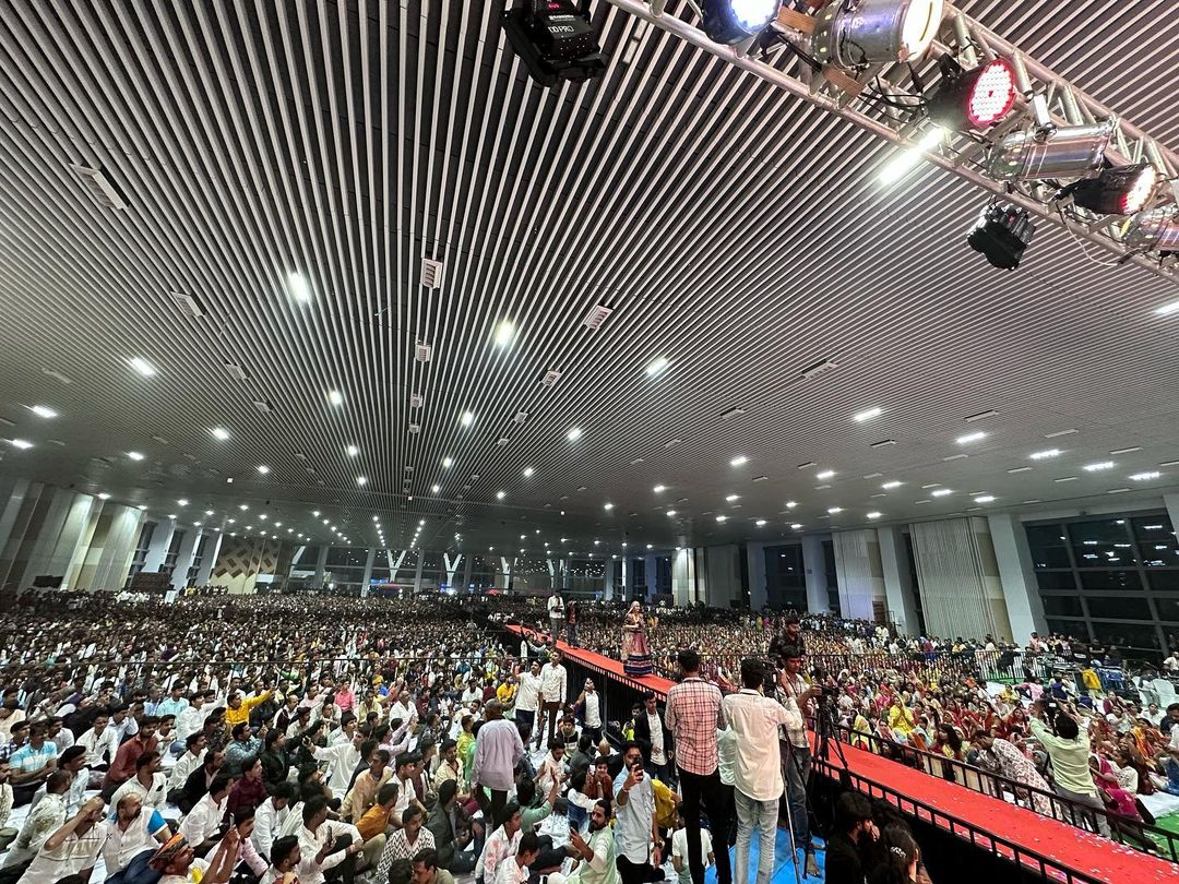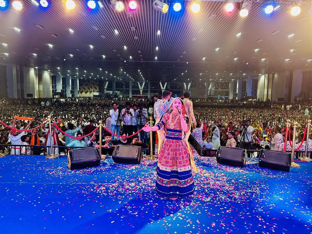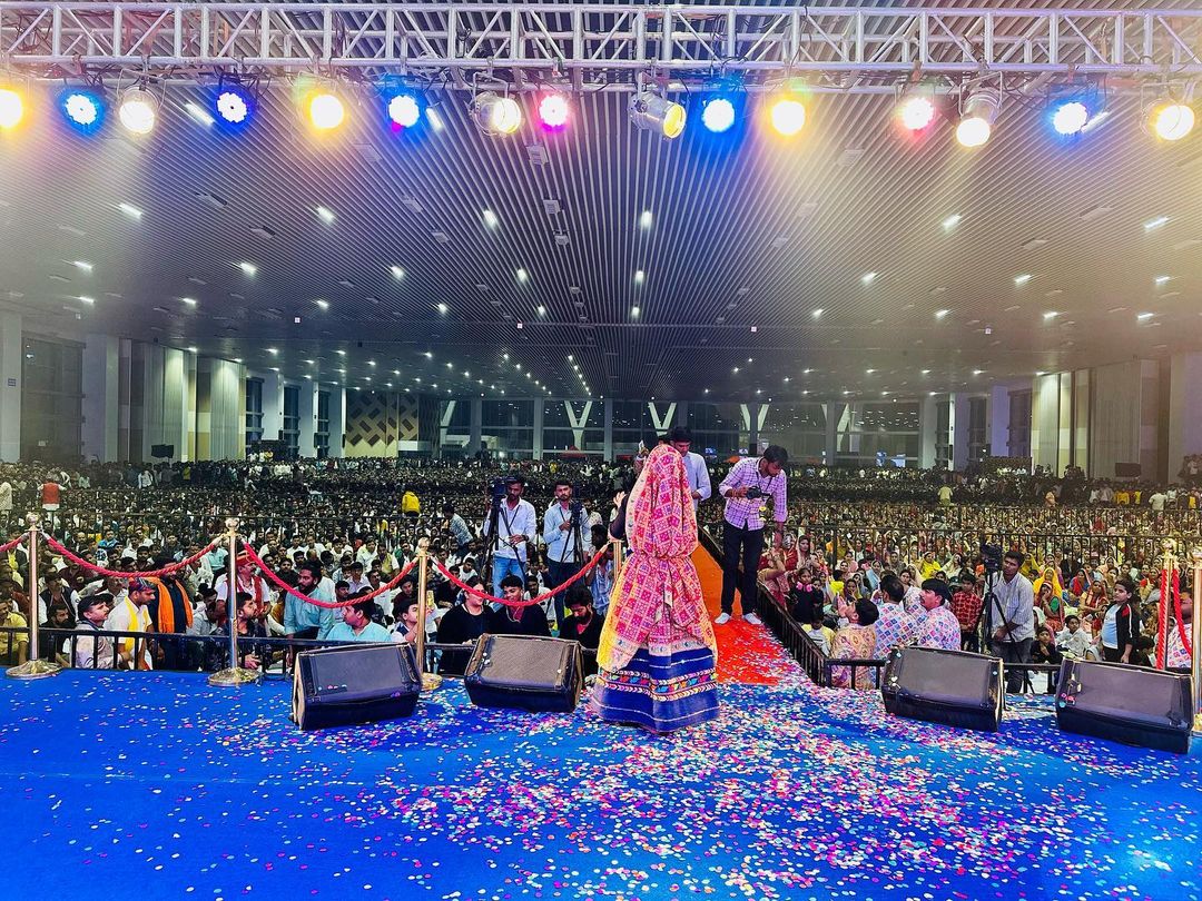 આ ઉપરાંત ગીતાબેનની તસવીરોમાં એ પણ જોવા મળી રહ્યું છે કે તેમના આ કાર્યક્રમમાં ખુબ જ મોટી જનમેદની હાજર રહી હતી અને ઘણા લોકો તેમના અવાજના તાલ પર ઝુમતા જોવા મળી રહ્યા છે. ગુજરાતની બહાર પણ ગીતાબેન રબારીનું આવું ભવ્ય સ્વાગત ખરેખર દિલ જીતી લેનારુ છે.