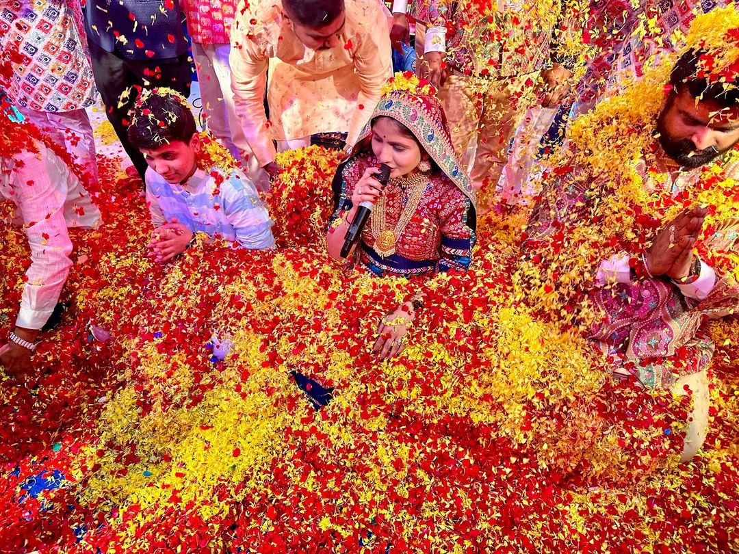 ત્યારે હાલમાં જ ગીતાબેન રબારી અને તેમના ભરથાર પૃથ્વી રબારીએ બેંગલુરુ, કર્ણાટકના એક કાર્યક્રમની કેટલીક તસવીરો શેર કરી છે, જેમાં ફૂલોની નગરી બેગલુરૂમાં ગીતાબેનના કાર્યક્રમમાં એટલા બધા ફૂલો વરસ્યા કે નજારો જોઈને સૌ કોઈ અભિભૂત થઇ ગયું. સાથે જ ગીતાબેન રબારી પણ ખુબ જ ખુશખુશાલ થતા જોવા મળ્યા હતા.