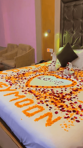 વાયરલ થયેલા આ વીડિયોમાં એક નવપરિણીત યુગલ તેમના હનીમૂન સ્થળે દેખાય છે. વીડિયોમાં રૂમની અંદરની વિગતો સ્પષ્ટ દેખાય છે – ટેબલ પર મૂકેલી કેક અને મોંઘી શેમ્પેન, ફૂલોથી સજાવેલું પલંગ, અને ફળોની પ્લેટ. આ તમામ બાબતો દર્શાવે છે કે દંપતી તેમના લગ્ન પછીના આ ખાસ પ્રસંગને યાદગાર બનાવવા માંગે છે.