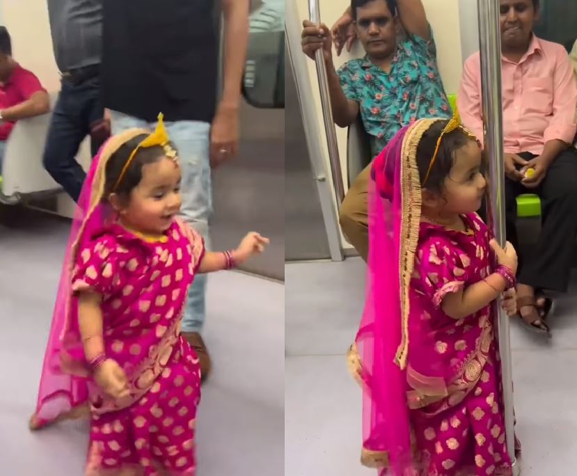 Little girl won hearts in the metro : નાના બાળકો દરેક વ્યક્તિને પસંદ હોય છે અને તેમનો ક્યૂટ ક્યૂટ અંદાજ જોઈને રસ્તે જતા લોકો પણ ઈમ્પ્રેસ થઇ જાય છે અને એ બાળકને રમાડવાનું મન તેમનું થઇ જતું હોય. તમે પણ ક્યારેક બસમાં કે ટ્રેનમાં ગયા હશો અને તમારી સામે કોઈ નાનું બાળક હશે તો તમે પણ તેને ચોક્કસથી રમાડશો. ત્યારે હાલ સોશિયલ મીડિયામાં એક નાની છોકરીનો વીડિયો વાયરલ થઇ રહ્યો છે. જે તેના ક્યૂટ અંદાજથી લોકોના દિલ જીતી રહી છે.