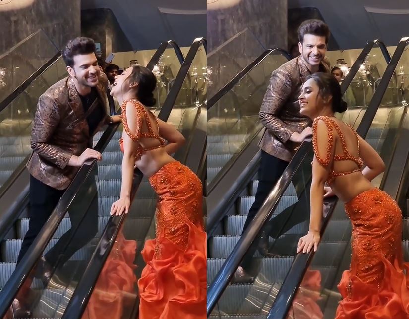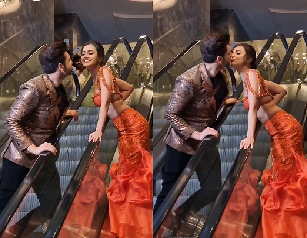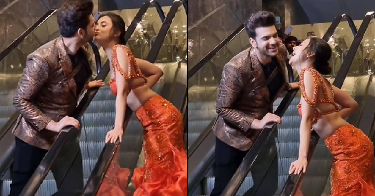 સોશિયલ મીડિયા પર સામે આવેલા આ વીડિયોમાં જોવા મળે છે કે કરણ અને તેજસ્વી અલગ-અલગ એસ્કેલેટર પર ઉભા છે. એક ઉપર જઈ રહ્યો છે, બીજો નીચે આવી રહ્યો છે અને વચ્ચે બંને એકબીજાને ક્રોસ કરીને કિસ કરે છે. તેજસ્વી ઓરેન્જ કલરના ડ્રેસમાં જોવા મળે છે, જ્યારે કરણ બ્લેઝરમાં જોવા મળી રહ્યો છે. બંને ઘણા ખુશ દેખાઈ રહ્યા છે.