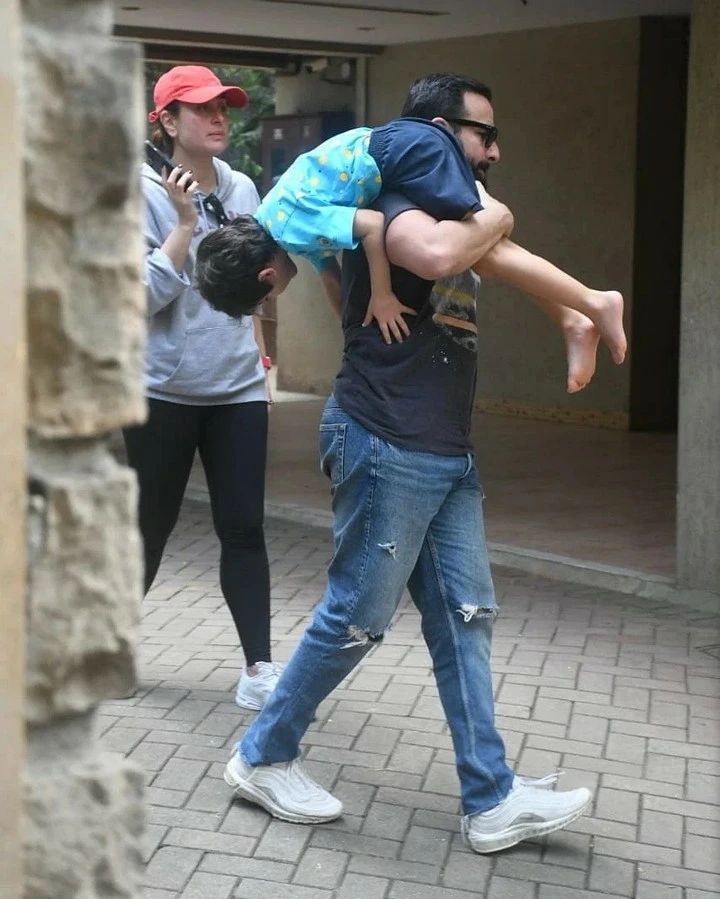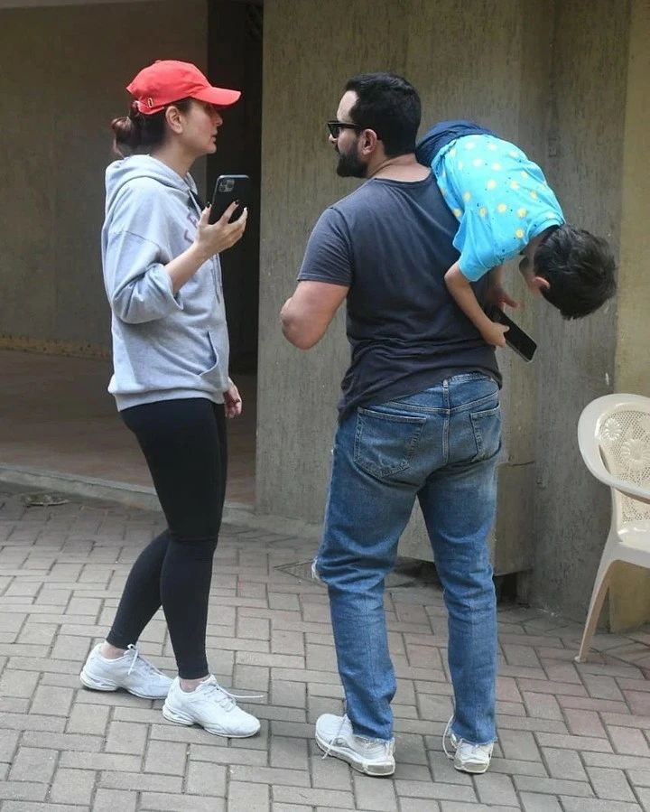 આ દરમિયાન બેબોએ સ્કાય બ્લુ રંગની હૂડી પહેરી હતી, જેની સાથે તેણે બ્લેક ટ્રેક પહેર્યું હતું. આ સાથે તેણે રેડ કેપ પણ પહેરી હતી, જેની સાથે મેળ ખાતા સ્પોર્ટ્સ શૂઝ કેરી કર્યા હતા.સૈફ અલી ખાનની વાત કરીએ તો, તેણે વાદળી રંગની ટી-શર્ટ પહેરી હતી, જેની સાથે તેણે ડેનિમ જીન્સ પહેર્યું હતું. આ ઉપરાંત તૈમુરે આ દરમિયાન હળવા શેડની ટી-શર્ટ સાથે શોર્ટ્સ મેચ કર્યા હતા. અબ્બાના ખભા પર લટકતો તૈમૂર હંમેશાની જેમ તેની ક્યુટનેસથી દિલ જીતી રહ્યો હતો.
