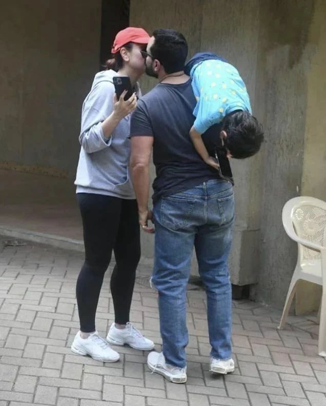 કરીના કપૂર જાહેરમાં સૈફ સાથે લિપ કિસ કરવા લાગી, દીકરા તૈમુર ફોનમાં બીઝી કરી દીધો જુઓ તસવીરો