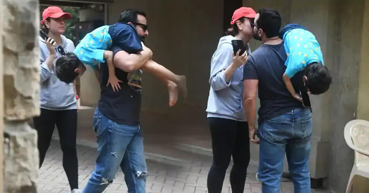 સૈફ અને કરીનાનો એક વીડિયો હાલ સામે આવ્યો છે, જે ખૂબ જ વાયરલ થઈ રહ્યો છે જેમાં અભિનેત્રી સાથે તૈમુર અને સૈફ તેના ઘરની બહાર જોવા મળી રહ્યા છે. આ દરમિયાન સૈફે તૈમુરને ખભા પર ઊંધો લટકાવ્યો છે અને કરીના કપૂર ફોન પર વાત કરતી જોવા મળી રહી છે. આ દરમિયાન જ અચાનક કરીના અને સૈફ તેમના મોટા પુત્ર તૈમુર અલી ખાનની સામે જ હોઠ પર કિસ કરે છે.
