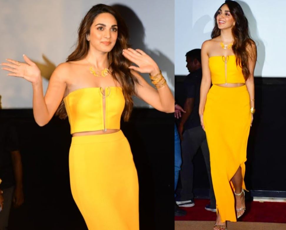 આ દરમિયાન અભિનેત્રીએ ખૂબ જ સુંદર ઓરેન્જ સ્લિટ સ્કર્ટ સાથે એ જ રંગનું ઓફ શોલ્ડર ટોપ પહેર્યુ હતુ. જેના પર ચાહકોની નજર પણ અટકી ગઈ હતી. આ સાથે કિયારાએ મેચિંગ ગોલ્ડન કલરના હાઈ હીલ્સ સેન્ડલ પહેર્યા છે અને ગળામાં સ્લાઇસ લખેલો નેકપીસ પણ કેરી કર્યો છે.એવું કહેવું ખોટું નહીં હોય કે અભિનેત્રી કિયારા અડવાણી દિવસેને દિવસે ગ્લેમરસ થતી જઇ રહી છે.