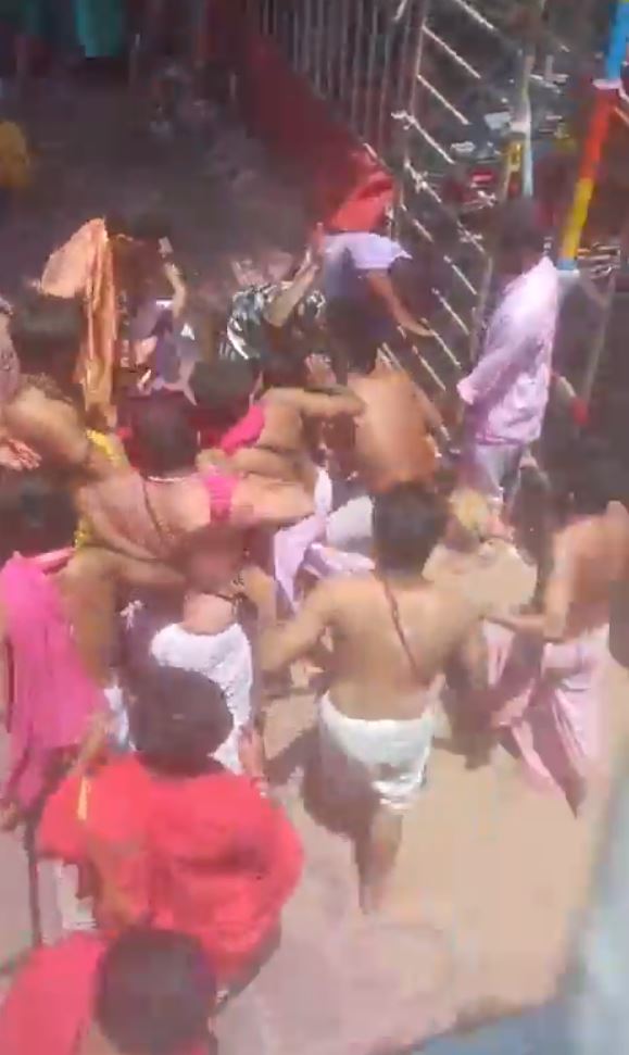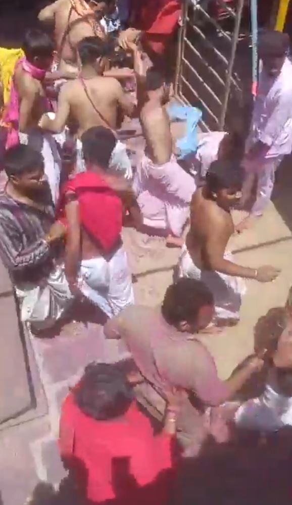 હદ તો ત્યારે થઈ જ્યારે એક પૂજારીએ હાથમાં રહેલું શ્રીફળ સીધું શ્રદ્ધાળુના માથામાં ઝીંકી દીધું હતું.લગભગ અડધી મિનિટ સુધી ચાલેલા આ અત્યાચારના વીડિયોએ લોકોના હૃદય હચમચાવી દીધા છે. પવિત્ર સ્થળ પર થયેલી આ હિંસાને પગલે સ્થાનિક વહીવટી તંત્ર અને પોલીસ એક્શનમાં આવી છે.