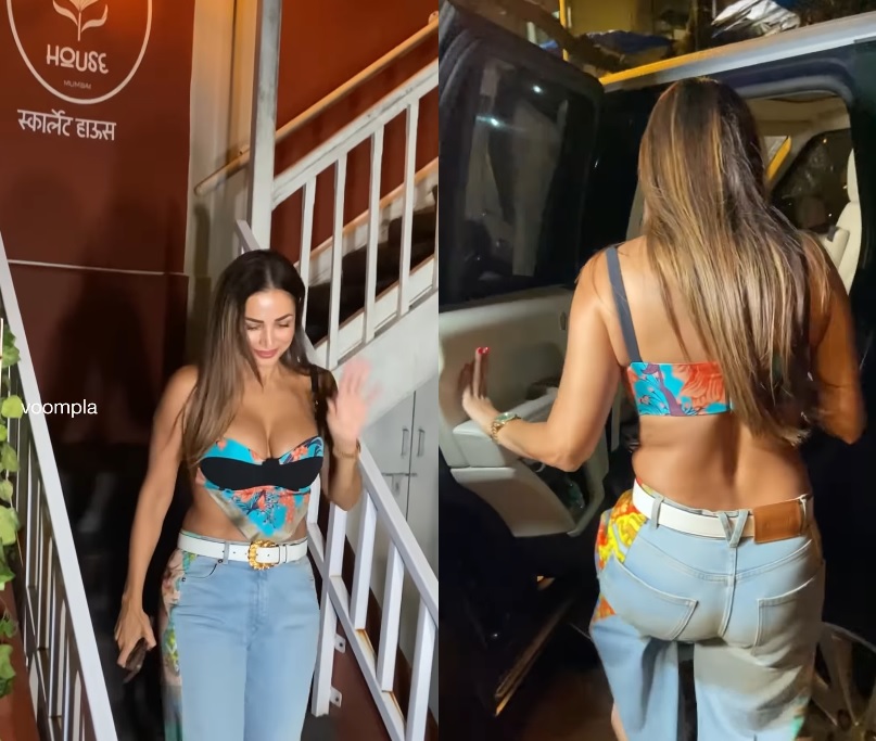બોલિવુડની સૌથી સ્ટાઈલિશ અને ફિટ એક્ટ્રેસ મલાઇકા અરોરાને તાજેતરમાં વીકએન્ડ પર બાંદ્રા સ્થિત પોતાના નવા રેસ્ટોરન્ટ સ્કાર્લેટ હાઉસની બહાર જોવામાં આવી. 50 વર્ષની ઉંમરે પણ મલાઇકા સાબિત કરી રહી છે કે ઉંમર માત્ર એક નંબર છે. આ દરમિયાન મલાઇકાએ હાઈ-વેસ્ટ બ્લુ ડેનિમ સાથે એક આકર્ષક બ્રાલેટ-સ્ટાઈલ ફ્લોરલ ટોપ પહેર્યુ હતુ. પ્લન્જિંગ નેકલાઈન અને ફિગર-હગિંગ ફિટિંગ તેના કર્વ્સને વધુ સુંદર બનાવી રહ્યુ હતુ. તેની સાથે વાઈડ-બેલ્ટ ડિટેલે તેમના લુકમાં ગ્લેમરનો તડકો લગાવ્યો.