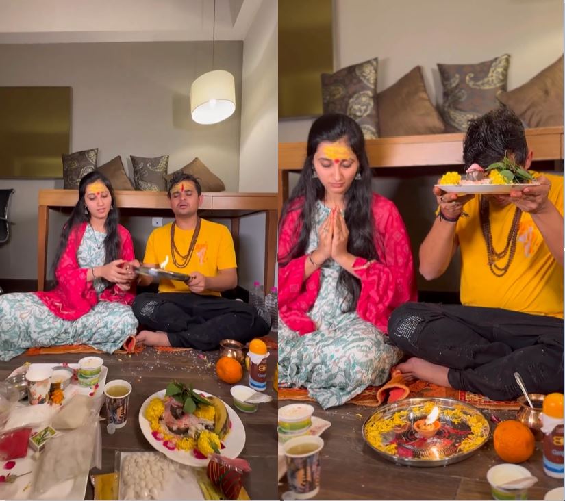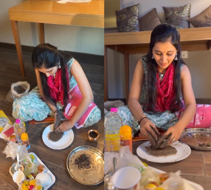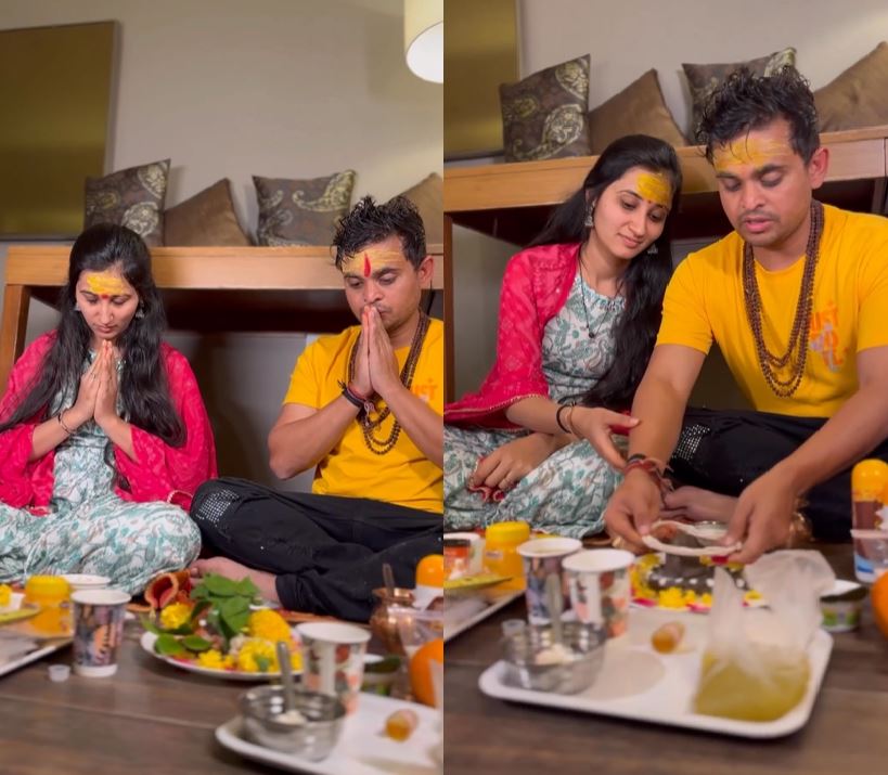 ત્યારે સામે આવેલા વીડિયોમાં જોવા મળી રહ્યું છે કે મીનાક્ષી દવે પોતાના હાથે માટીથી શિવલિંગ બનાવી રહી છે. મીનાક્ષી નાનું પણ ખુબ જ સુંદર શિવલિંગ બનાવે છે. જેના બાદ ખજુરભાઈ પણ તેમની પાસે બેસે છે, મીનાક્ષી ખજુરભાઈને તિલક કરે છે અને તેના બાદ બંને સાથે મળીને શિવજીની પૂજા કરતા જોવા મળી રહ્યા છે.