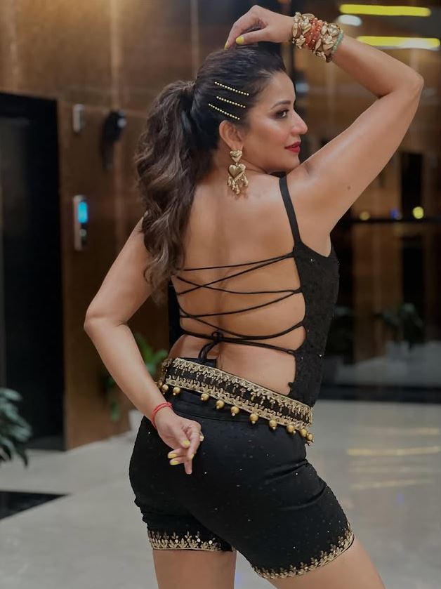 મોનાલિસાએ બ્લેક કલરનો શોર્ટ ડ્રેસ પહેર્યો છે અને પોતાનો કર્વી ફિગર ફ્લોન્ટ કર્યો છે. મોનાલિસાની આ લેટેસ્ટ બોલ્ડ તસવીરો સોશિયલ મીડિયા પર ઝડપથી વાયરલ થઈ રહી છે.મોનાલિસાએ અલગ-અલગ અંદાજમાં કેમેરાની સામે પોઝ આપ્યા છે અને લોકોનું ધ્યાન ખેંચી રહી છે. મોનાલિસાની તસવીરોને ખૂબ પસંદ કરવામાં આવી રહી છે અને લોકો રિએક્શન આપી રહ્યા છે.