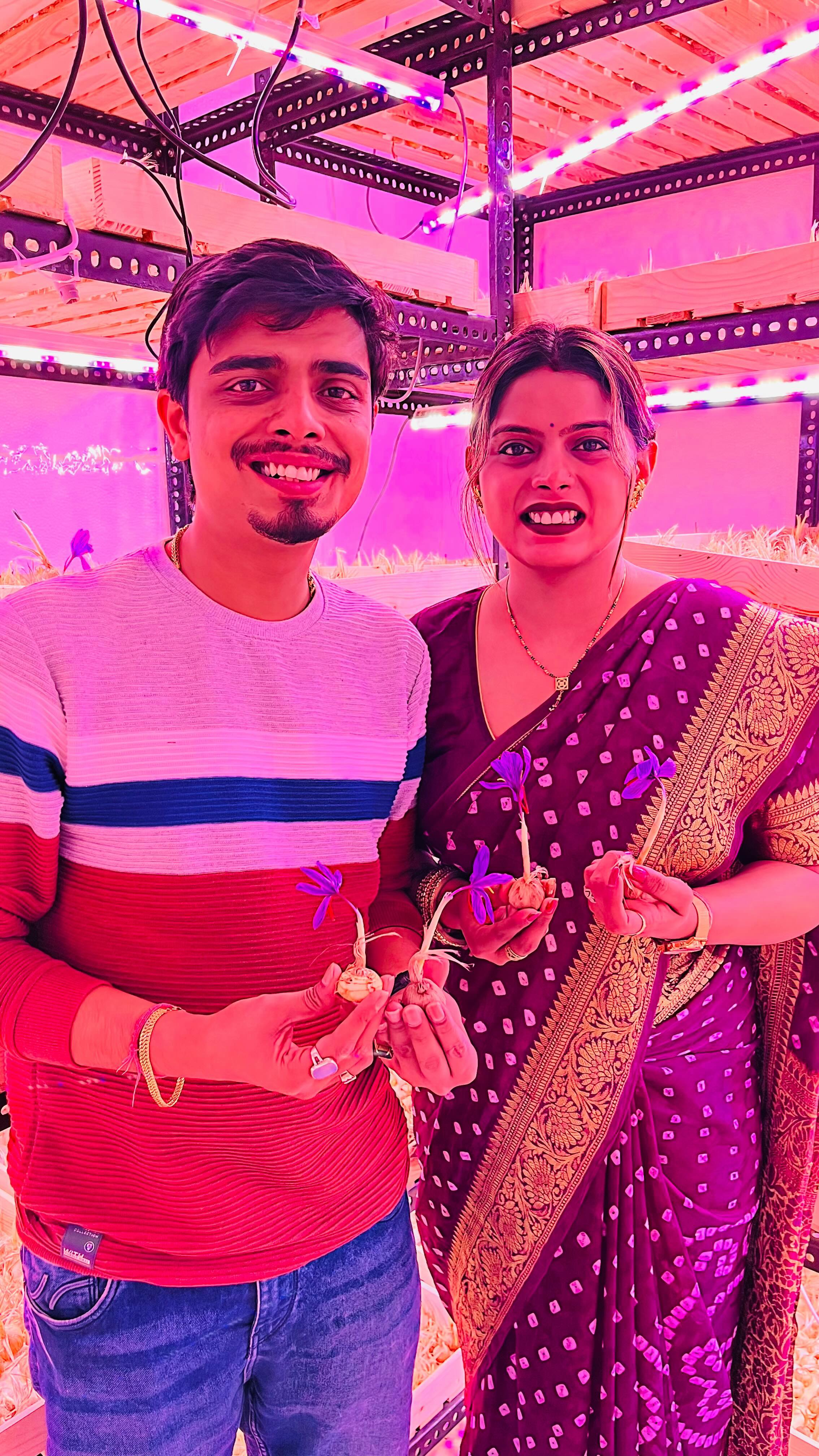 દંપતીએ પ્રક્રિયાઓને વધુ સારી રીતે સમજવા માટે કાશ્મીરની મુલાકાત લેવાનું નક્કી કર્યું. 2019 અને 2020ની શરૂઆતની વચ્ચે (COVID-19 રોગચાળા પહેલા) તેમણે સ્થાનિક ખેડૂતો પાસેથી પરંપરાગત કેસરની ખેતી વિશે શીખીને કુલ 3.5 મહિના પસાર કરીને ઘણી વખત કાશ્મીરનો પ્રવાસ કર્યો. દિવ્યા કહે છે, અમે પરંપરાગત જ્ઞાનને નવા યુગના એરોપોનિક્સ સાથે જોડી દીધું અને અમારા ઘરના 80-સ્ક્વેર ફૂટના રૂમમાં (ધુલેમાં, જ્યાં દંપતી તે સમયે રહેતા હતા ત્યાં) પ્રયોગ કરવાનું નક્કી કર્યું. વર્ષ 2020માં દંપતીએ કાશ્મીરમાંથી 100 કેસરના છોડ ખરીદ્યા, એક એર કંડિશનર લગાવ્યું અને ઘરની અંદર ખેતી માટે હ્યુમિડિફાયર બનાવ્યું.