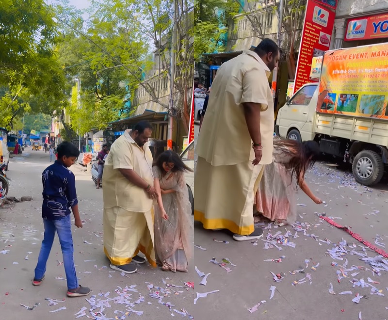આ વીડિયોમાં અભિનેત્રી સલવાર સૂટમાં જોવા મળી રહી છે. તેણે આ લુક સાથે તેના વાળ ખુલ્લા રાખ્યા છે. ત્યાં અભિનેત્રીનો પતિ શર્ટ અને લુંગીમાં જોવા મળી રહ્યો છે. આ જ લુકમાં ફિલ્મમેકર રવિન્દ્ર ચંદ્રશેખરને પત્ની મહાલક્ષ્મી સાથે બે તસવીરો પણ શેર કરી છે, જેમાંથી એક તસવીરમાં મહાલક્ષ્મી પતિ રવિન્દ્ર ચંદ્રશેખરનને પ્રેમથી નિહાળતી જોવા મળી રહી છે.