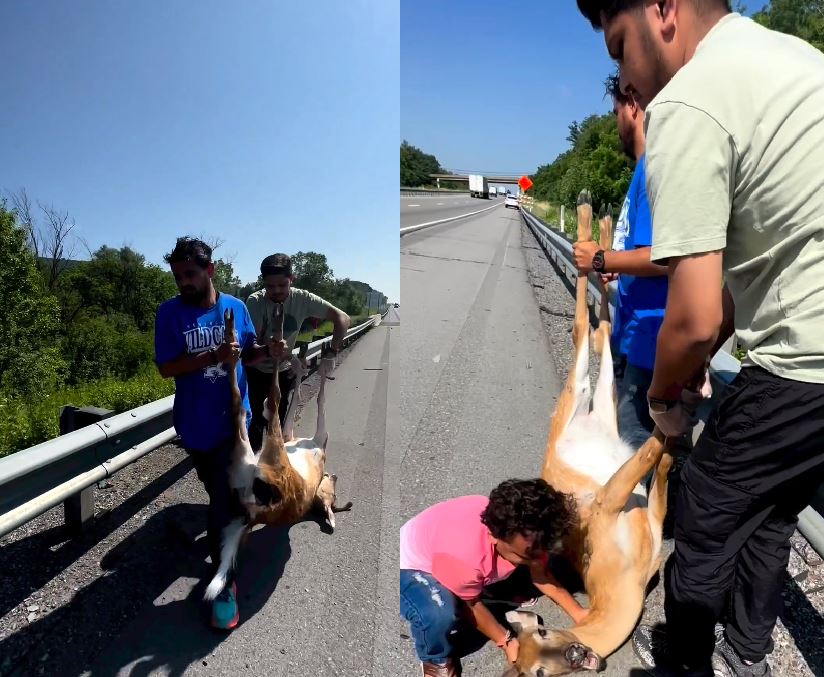 રસ્તા પર પડેલા મૃત હરણને જોઈને જાગી માનવતા :