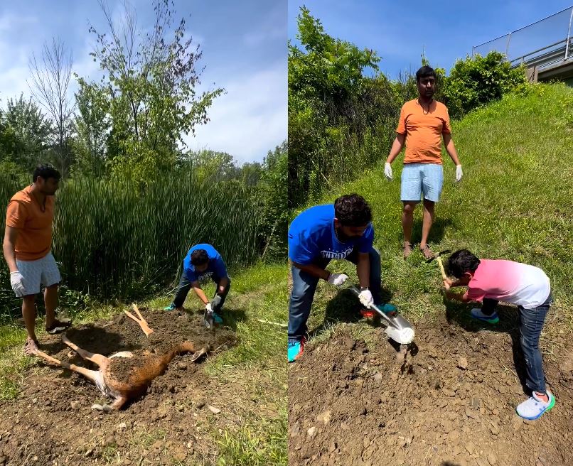 જેના બાદ નીતિનભાઈ અને તેમની ટીમના સભ્યો જમીનમાં ખાડો ખોદે છે અને પછી તે હરણને દફનાવી દે છે. આ વીડિયોને શેર કરવાની સાથે નીતિન જાનીએ કેપશનમાં જણાવ્યું છે કે, “ગર્ભવતી માદા હરણ અમને અમેરિકાના શિકાગોના રોડ પર મળી, બચ્ચું પેટમાં જ મરી ગયું હતું. દુઃખની સાથે તેને રોડ પરથી ઉઠાવીને દફન કર્યું.”