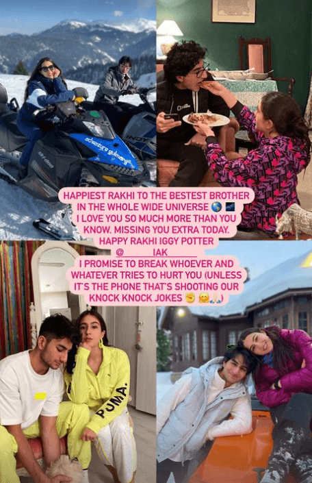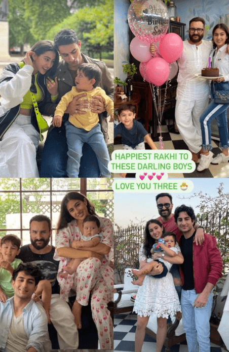 બીજી તરફ સારા અલી ખાને પણ પોતાના ભાઈઓની તસવીરો શેર કરીને રક્ષાબંધનની શુભકામનાઓ આપી છે, સારાએ ઈબ્રાહીમ, તૈમુર, જેહની સાથે ક્લિક કરેલી ક્યૂટ તસ્વીર શેર કરી છે. જેમાં તે પોતાના ભાઈઓ પર પ્રેમ લૂંટાવતી જોવા મળી રહી છે. હાલના સમયમાં સારા કોઈ કામના પ્રોજેક્ટને લીધે વિદેશમાં છે માટે તે આ અવસર પર પોતાના ભાઈઓને ખુબ યાદ કરી રહી છે.