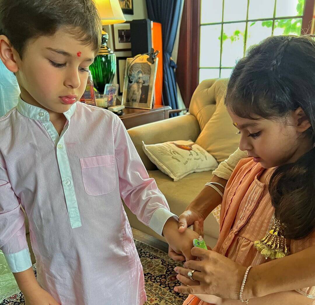આ નિમિતે બૉલીવુડ અને ટીવી ઈન્ડસ્ટ્રીના કલાકારો વચ્ચે પણ રક્ષાબંધનના તહેવારનો ભારે ઉત્સાહ જોવા મળ્યો હતો. એવામાં પટૌડી ખાનદાનમાં પણ ગઈ કાલે રક્ષાબંધનની ભવ્ય રીતે ઉજવણી કરવામાં આવી હતી, જેની તસવીરો પણ સોશીયલ મીડિયા પર સામે આવી છે.આ ખાસ અવસર પર સૈફ અલી ખાન, કરીના કપૂર, સોહા અલી ખાન, તેમજ તૈમુર, જેહ અને ઇનાયા ખેમુએ પણ રક્ષાબંધનની ઉજવણી કરી હતી.