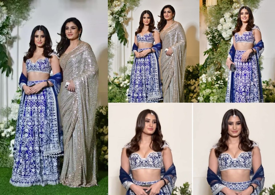 રવીનાએ ગોલ્ડન કલરની ચમકદાર સાડી પહેરી હતી, જ્યારે રાશાએ બ્લુ અને વ્હાઇટ લહેંગો પહેર્યો હતો. આ હેવી એમ્બ્રોઇડરીવાળા લહેંગામાં રાશા ખૂબ જ સુંદર લાગી રહી હતી. રાશાનો આ લુક સામે આવ્યા બાદથી દરેક જગ્યાએ તેની ચર્ચા થઈ રહી છે. ચાહકો તેની સુંદરતાના વખાણ કરતા થાકતા નથી.