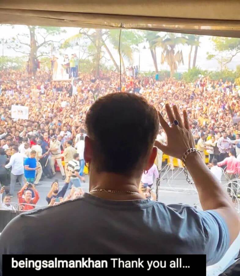 સલમાન ખાનના ફેન્સ ગેલેક્સી એપાર્ટમેન્ટ્સની બહાર લાંબા સમયથી રાહ જોઈ રહ્યા હતા. પોલીસ બેરીકેટ્સ લગાવીને તેમને કાબૂમાં રાખવાનો પ્રયાસ કરી રહી હતી. જો કે, જ્યારે સલમાન તેના ફ્લેટની બાલ્કનીમાં આવ્યો ત્યારે ભીડ કાબૂ બહાર થઈ ગઈ અને પછી મુંબઈની લોકલ પોલીસે લાઠીચાર્જ કર્યો.