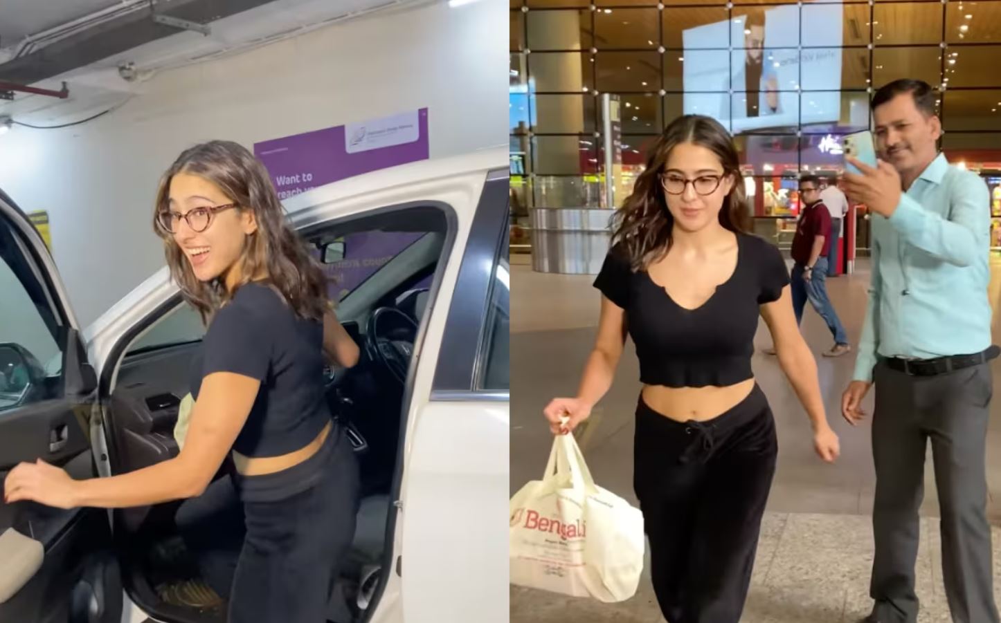 સારા અલી ખાનનો વીડિયો સોશિયલ મીડિયા પર સામે આવ્યો છે. આ વીડિયોમાં સારા અલી ખાન મુંબઈ એરપોર્ટ પર ઓલ બ્લેક લુકમાં જોવા મળી રહી છે. વીડિયોમાં જોવા મળે છે કે સારા ફેન્સ સાથે ફોટો ક્લિક કરાવે છે અને પછી દોડવા લાગે છે. વીડિયોમાં સંભળાય છે કે એક પેપરાજી કહી રહ્યો છે- “મૅમ, ગરીબોની નોકરી જશે”.