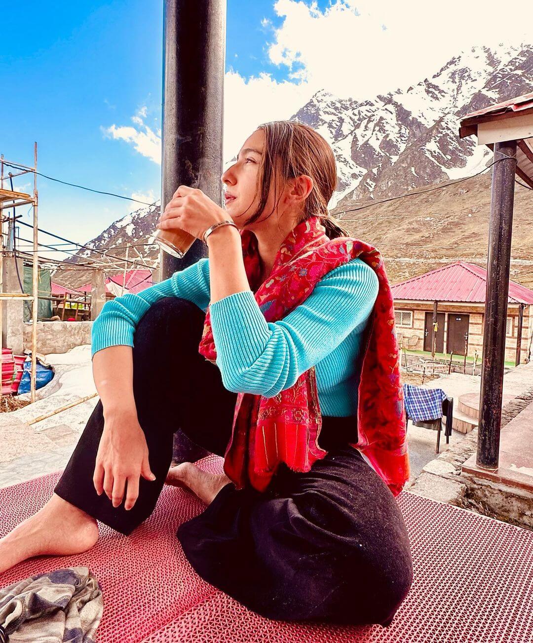 સારાએ શેર કરેલી તસવીરોમાં તે ભક્તિમાં મગ્ન જોવા મળે છે. અને કેટલીક તસવીરોમાં તે વાદીઓની મજા માણી રહી છે. સારા પણ બરફીલા મેદાનોમાં ચાની ચૂસકી લેતી જોવા મળે છે. એક ફોટોમાં સારાએ ઠંડીથી બચવા માટે ફની ફેસ માસ્ક પહેર્યો છે, જેને ચાહકો ખૂબ પસંદ કરી રહ્યા છે.