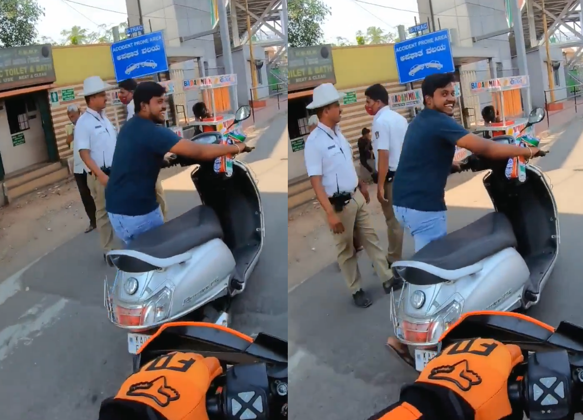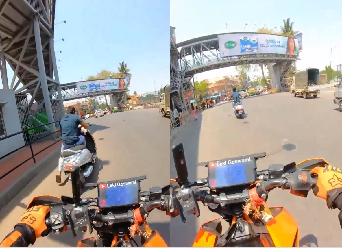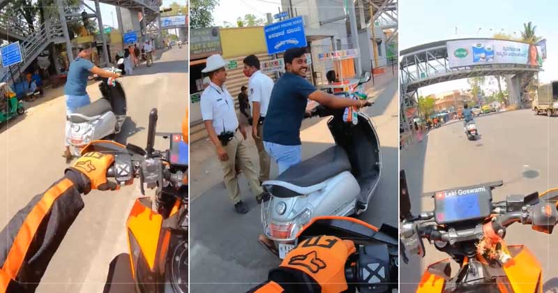 બાઈક સવાર તેને જોઈને બાઇક ધીમી કરી દે છે અને પૂછે છે કે શું થયું? પરંતુ તે વ્યક્તિ આ રીતે આગળ જતો રહે છે. વીડિયોમાં દેખાઈ રહ્યું છે કે રસ્તા પર કેટલાક ટ્રાફિક પોલીસવાળા ઉભા છે જેમને તે આ રીતે ક્રોસ કરે છે. આ પછી તે સવાર તરફ ઈશારો કરે છે અને કહે છે કે તે ટ્રાફિક પોલીસના કારણે આવું કરી રહ્યો હતો. આગળ વીડિયોમાં જોવા મળે છે કે તે સ્કૂટર સ્ટાર્ટ કરે છે અને જતો રહે છે.