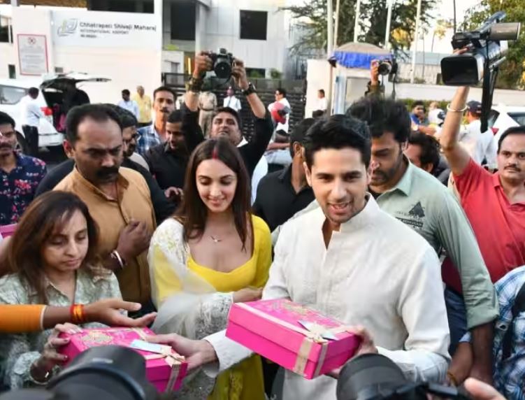 ત્યારે ગઇકાલના રોજ એટલે કે 12 ફેબ્રુઆરીએ કપલ દિલ્હીથી મુંબઇ આવ્યુ હતુ અને મુંબઈમાં બોલિવુડ સેલેબ્સ માટે ગ્રાન્ડ રિસેપ્શન પાર્ટી રાખી હતી. ત્યાં મુંબઇ પહોંચતાની સાથે જ સિદ-કિયારાએ મીડિયાને પોતાના હાથે લગ્નની મીઠાઈઓ વહેંચી અને એકસાથે ઘણા રોમેન્ટિક પોઝ આપ્યા.