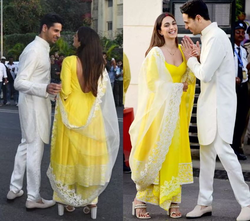 આ કપલની તસવીરો હવે ઈન્ટરનેટ પર ખૂબ જ વાયરલ થઇ રહી છે. લગ્ન બાદ મુંબઈ પહોંચેલી સિદ્ધાર્થ કિયારાની જોડી એકસાથે ખૂબ જ ક્યૂટ લાગી રહી હતી. આ દરમિયાન નવી નવેલી દુલ્હન કિયારા યલો સૂટમાં ખૂબ જ સુંદર લાગી રહી હતી. તેણે માંગમાં સિંદૂર, ગળામાં મંગળસૂત્ર અને એન્ગેજમેન્ટ રિંગ સાથે તેનો લુક પૂર્ણ કર્યો હતો.
