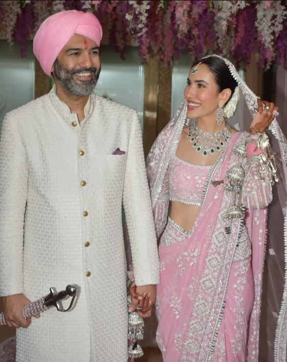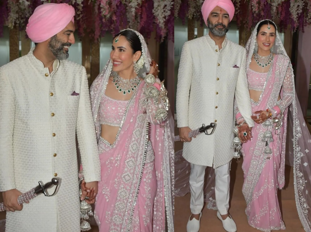 આ સાથે જ બ્રાઈડલ લુકમાં પણ સોનાલીની તસવીરો ઈન્ટરનેટ પર ધૂમ મચાવી રહી છે. સોનાલીએ લગ્ન બાદ તેના પતિ સાથેની ત્રણ તસવીરો ઇન્સ્ટાગ્રામ પર શેર કરી છે, જે આવતાની સાથે જ વાયરલ થઇ ગઇ. પિંક જોડામાં અભિનેત્રીનો બ્રાઇડલ લુક ધૂમ મચાવી રહ્યો છે, એટલું જ નહીં, દુલ્હનના જોડામાં સોનાલીની એન્ટ્રી પણ જબરદસ્ત છે, તેણે તેના પેટ ડોગ સાથે મંડપમાં એન્ટ્રી કરી હતી.