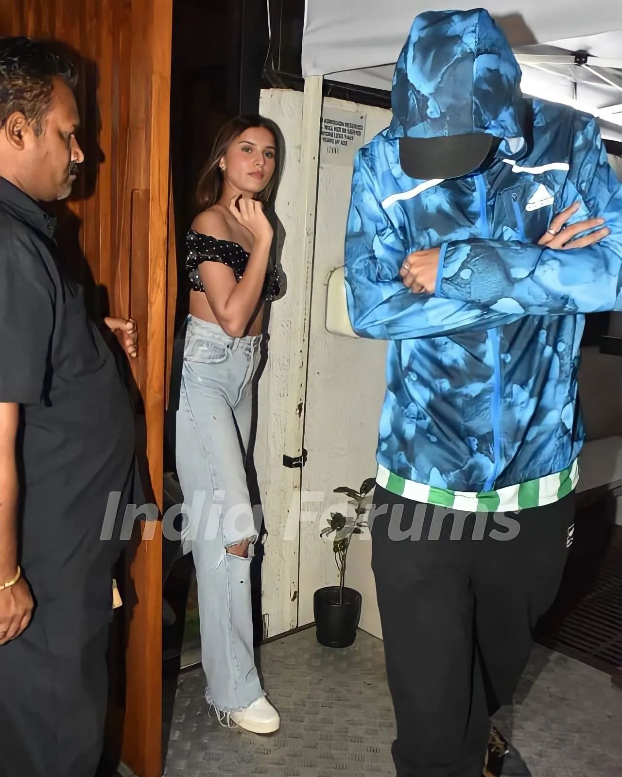 આ સમયે તારાએ બ્લેક ઓફ શોલ્ડર ક્રોપ ટોપ અને ડેનિમ જીન્સ પહેર્યું હતું, લાઇટ મેકઅપની સાથે તારાએ પોતાના વાળ ખુલ્લા રાખ્યા હતા. તારનું ટોપ એટલુંડીપ હતું કે તેમાં તેની હોટનેસ ઉભરાઈ રહી હતી, હંમેશાની જેમ તારાએ આ લુકમાં પણ હોટનેસનો તડકો લગાવ્યો હતો. જ્યારે તેની સાથેનો મિસ્ટ્રી બોય બ્લુ આઉટફિટમાં જોવા મળ્યો હતો. બંને જેવા જ બહાર નીકળ્યા કે મીડિયાના કેમેરામાં કેપ્ચર થઇ ગયા હતા.