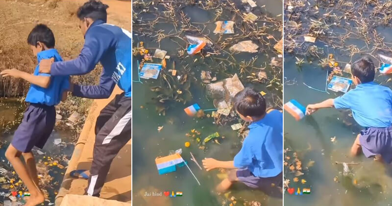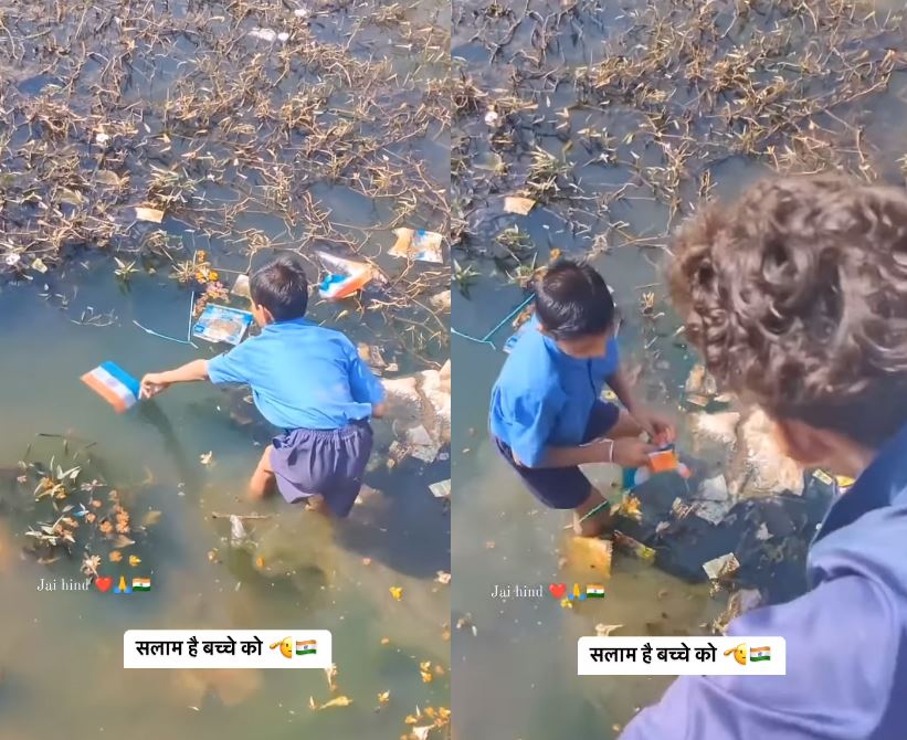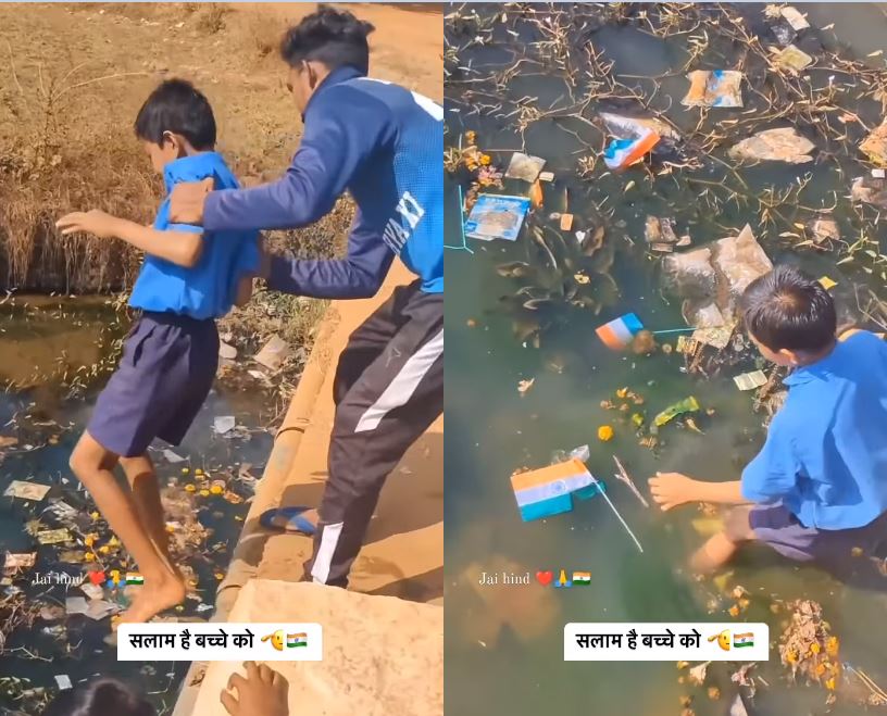 આ બાળકે લોકોને શીખવ્યો સાચો દેશભક્તિનો પાઠ, ગંદા પાણીમાં પડી ગેયેલા તિરંગાને અંદર ઉતરીને કાઢ્યા બહાર, જુઓ વીડિયો