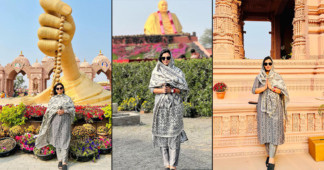 ઉર્વશી રાદડિયાએ શેર કરેલી તસ્વીરોમાં જોઈ શકાય છે કે તે શતાબ્દી મહોત્સવમાં બનાવવામાં આવેલી અલગ અલગ જગ્યાઓ સામે ઉભા રહીને પોઝ આપી રહ્યા છે. પહેલી તસ્વીરમાં માળા ફેરવી રહેલા હાથની સામે તે ઉભા છે. બીજી તસ્વીરમાં તે પ્રમુખસ્વામી મહારાજની ભવ્ય પ્રતિમા આગળ બે હાથ જોડીને ઉભા રહ્યા છે.