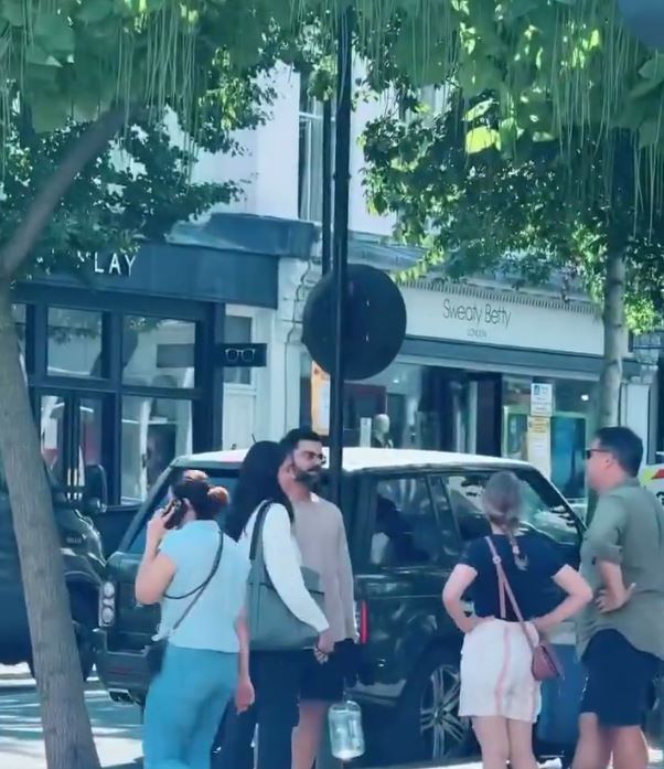 હાલમાં બંનેનો એક વીડિયો પણ સામે આવ્યો છે, જેમાં બંનેને કોઈ ધામધૂમ વગર સામાન્ય લોકોની જેમ લંડનની સડકો પર ફરતા અને સ્થાનીય લોકો સાથે વાત કરતા જોવા મળ્યા છે. વિરાટ કોહલીના ફેન ક્લબે તેમનો અને અનુષ્કાનો વીડિયો સામાજિક માધ્યમો પર શેર કર્યો છે, જેમાં કિંગ કોહલી અને અનુષ્કા બંને કેઝ્યુઅલ લુકમાં નજરે પડી રહ્યા છે. બંનેની આસપાસ ન તો કોઈ બોડીગાર્ડ છે અને ન જ હેલ્પર છે. વીડિયોમાં વિરાટ શોર્ટ્સ અને બેજ સ્વેટશર્ટમાં નજરે પડી રહ્યો છે.