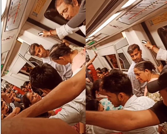 આવી ઘટનાઓના વીડિયો પણ અવારનવાર સોશિયલ મીડિયા પર વાયરલ થાય છે. ત્યારે હાલમાં દિલ્હી મેટ્રોનો વધુ એક વીડિયો વાયરલ થયો છે જેમાં કોચમાં ભીડ જોવા મળી રહી છે અને લોકો ઉભા રહીને મુસાફરી કરતા પણ જોવા મળી રહ્યા છે. આ દરમિયાન, એક વૃદ્ધ મહિલા ત્યાં ઉભેલા કપલને હાથ પકડવા અને એકબીજાના ગાલ પર ચુટકી મારતા અસ્વસ્થતા અનુભવી રહી હતી.