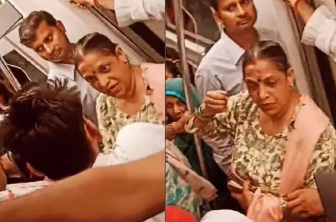 મેટ્રોમાં ન કરવાના શરમજનક કામો ચાલતા હતા, આ આંટીનો મગજ ગયો, જુઓ